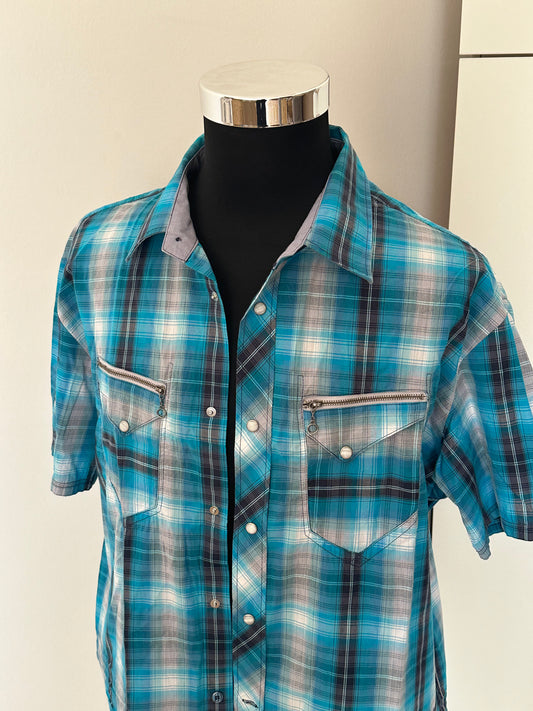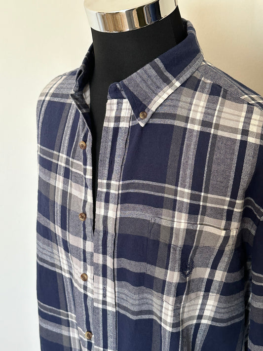 Camicia Uomo Chaps a Quadri Blu Grigia in Flanella 100% Cotone Taglia L
